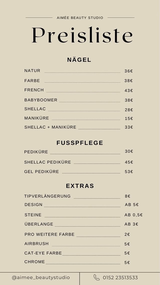 „Vielen herzlichen Dank für die perfekten Sommernägel! Das Personal ist äußerst freundlich, geht auf individuelle Wünsche ein und arbeitet sehr sorgfältig. Ich komme definitiv wieder – mein neues Lieblingsnagelstudio! 🥰“